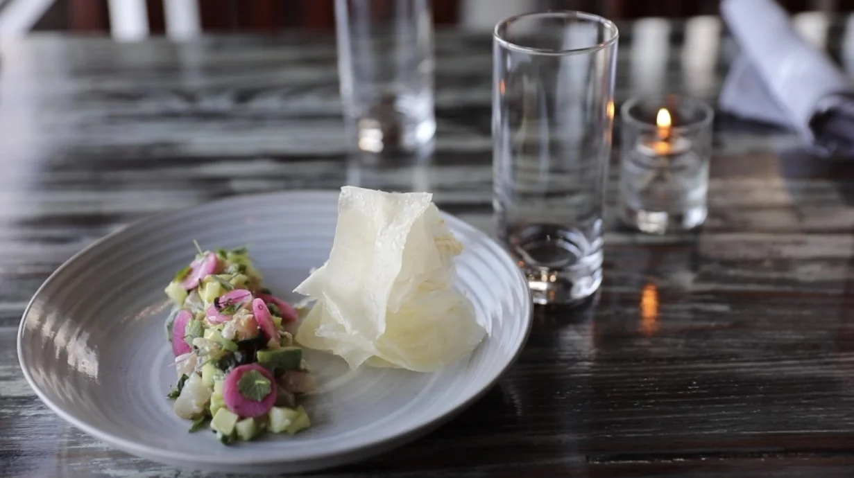 Cucumber, Avocado, Jalapeño, Pickled Garlic, Torn Herbs, Taro Root Cips
